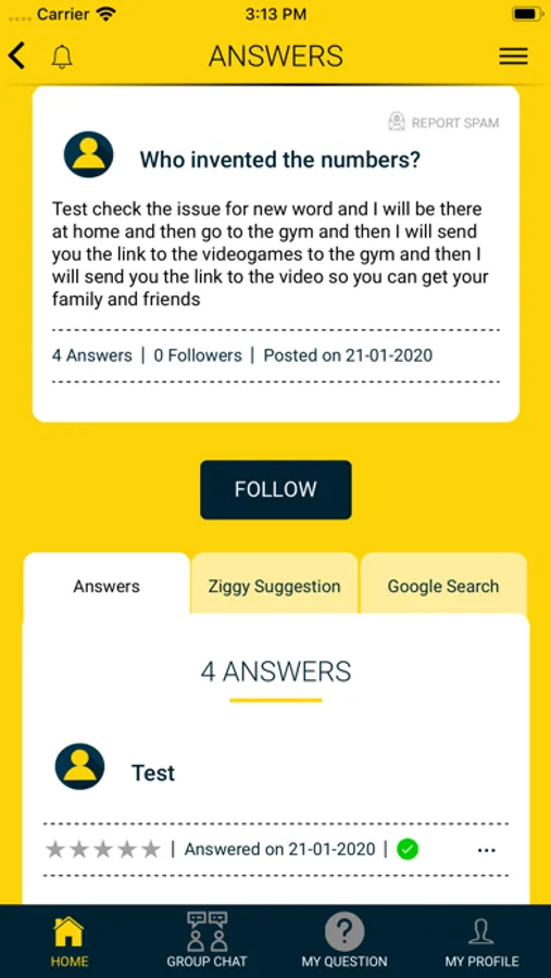 The Ziggy Project acts as an online platform between admin and student where student can login by providing mobile number.Basically Student app consist of My Question,Group Chat,Answer a question,Leader board,Question I follow and My Profile.A Student can post a question subject wise with documents and he will get the correct answer from other students,suggestion with ratings,suggestion and Points.A student can create a group and can invite to any Member to chat and discuss about any topic they like .