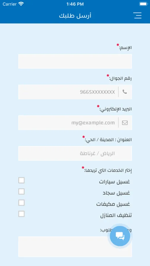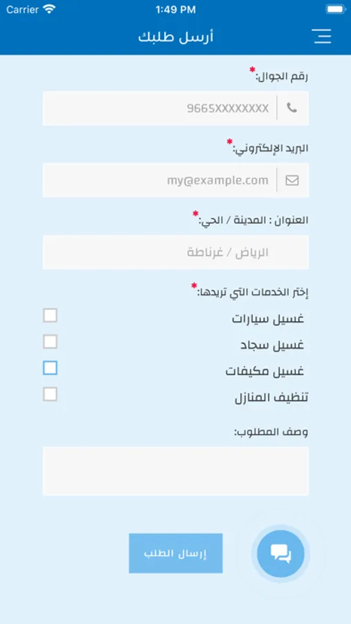 حدد الخدمة المطلوبة وبعض التفاصيل التي تساعدنا على خدمتكم بأفضل صورة