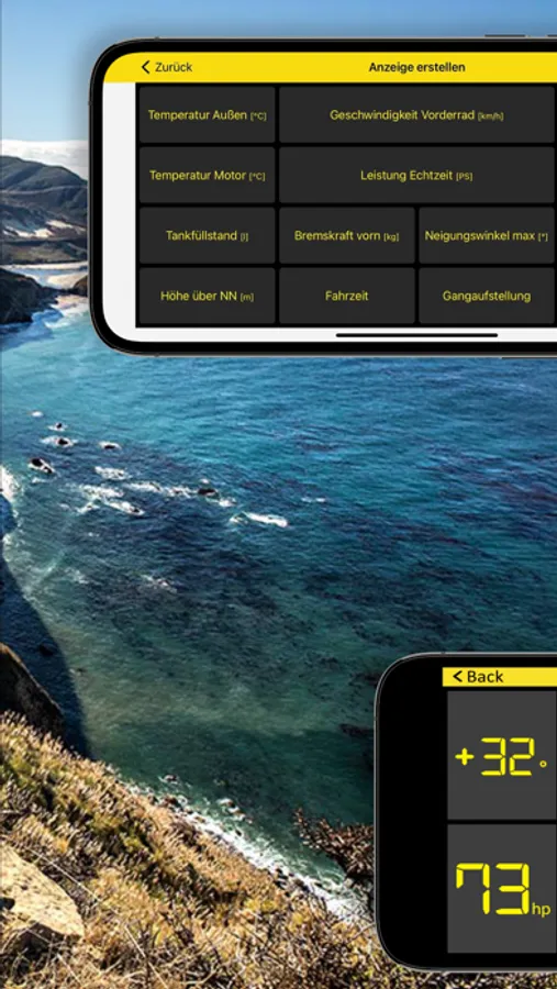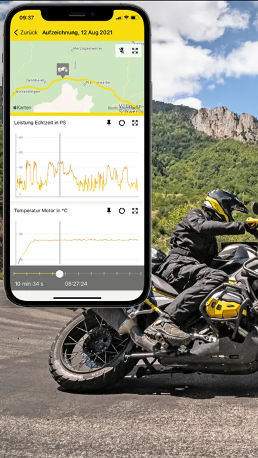 In total, more than 60 values for the operating state of the motorcycle and the driving dynamics. The parameters of many functions are preset, but can be customized by the user.