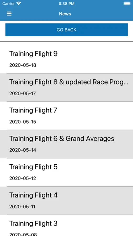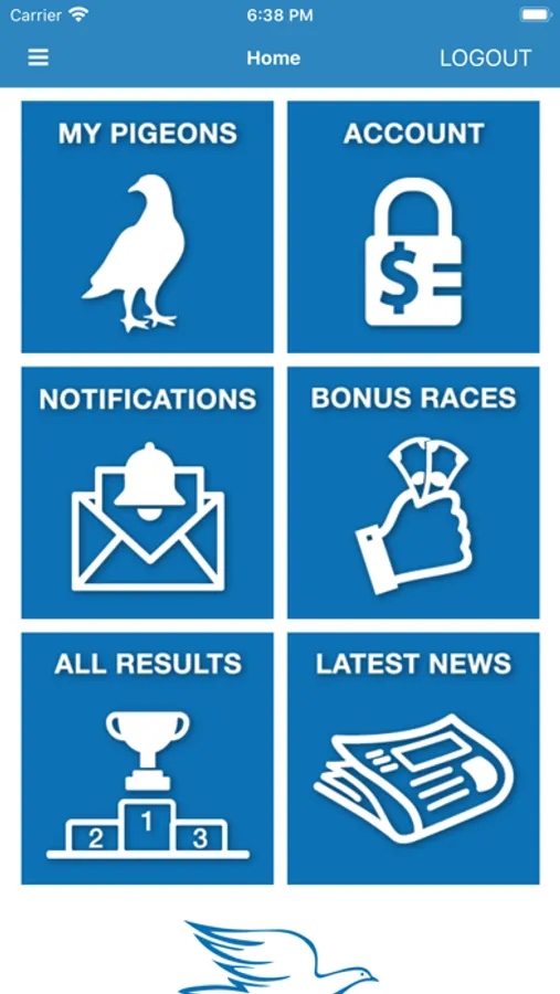 Allows for users to view live races, race history, notifications, pigeons, news and account standings.