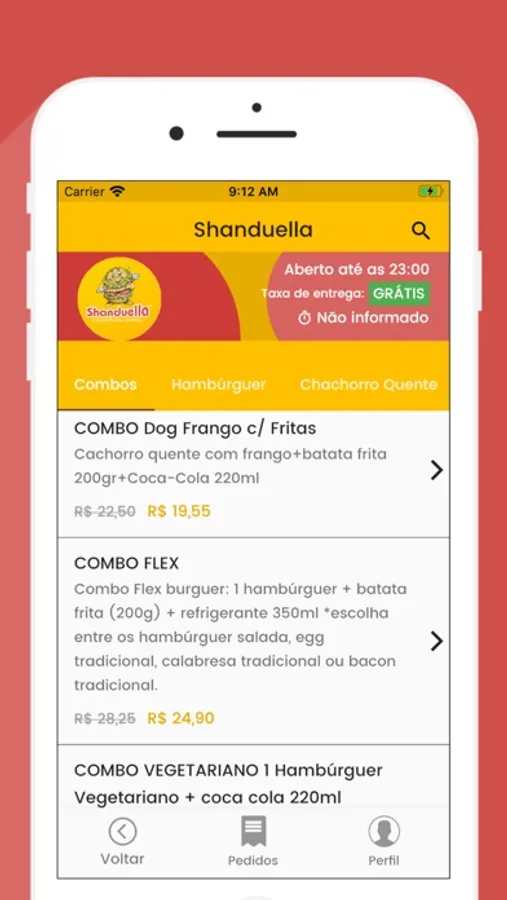 - cardápio ilustrativo, com preços dos produtos;