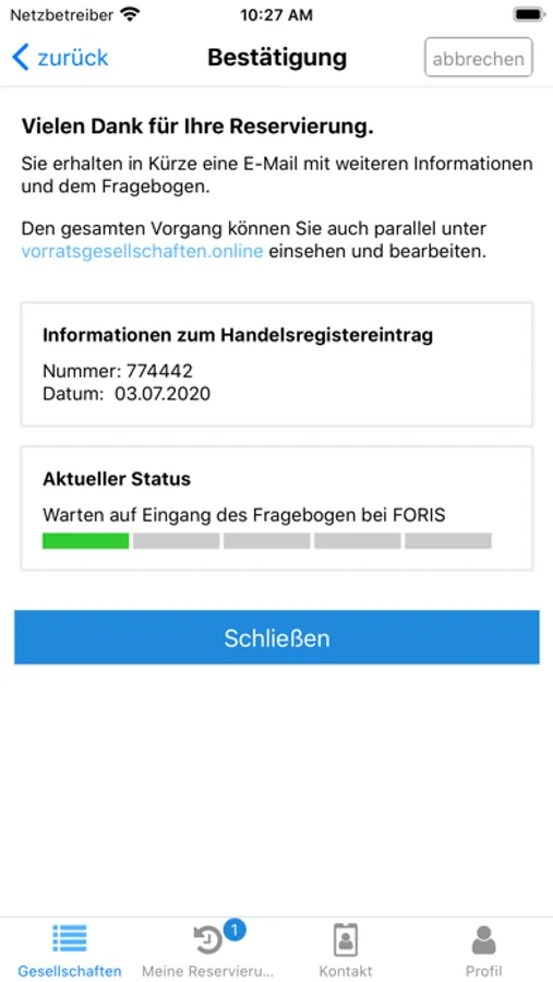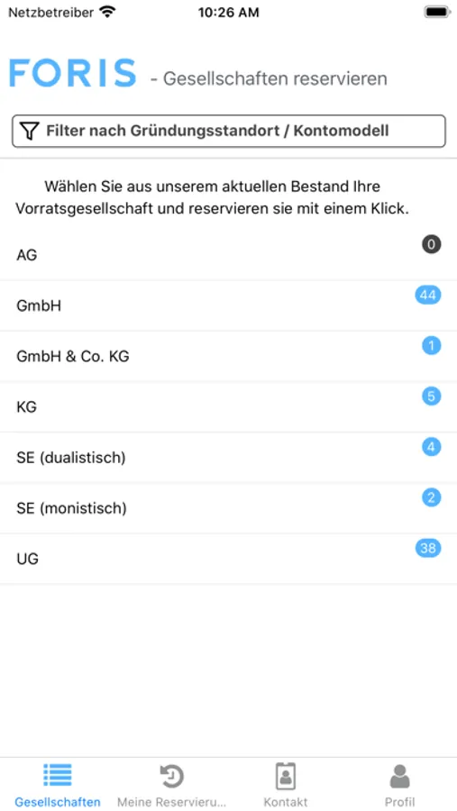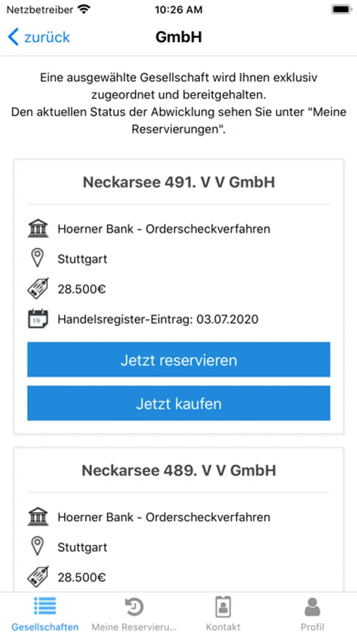 Reservieren Sie ab sofort direkt in unserer Vorratsgesellschaften-App. Behalten Sie den aktuellen Status Ihrer Reservierungen im Blick oder heben Sie getätigte Reservierungen wieder auf.