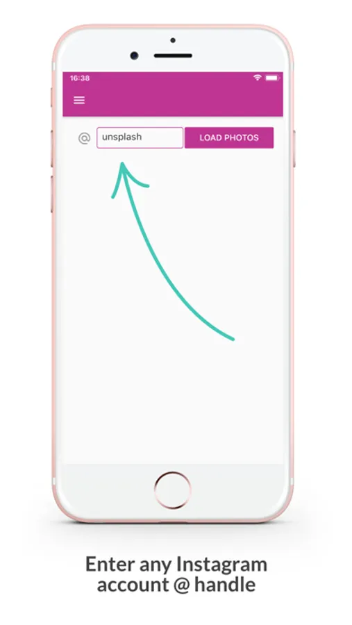1. Enter any Instagram @username and tap Load. No auth required, recent photos load instantly.