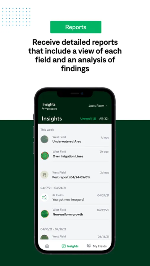 Get yield-saving insights about pivot irrigation issues and crop health concerns sent right to your phone. If your farm uses center pivot irrigation, Insights by Prospera offers two powerful subscription services in one app.