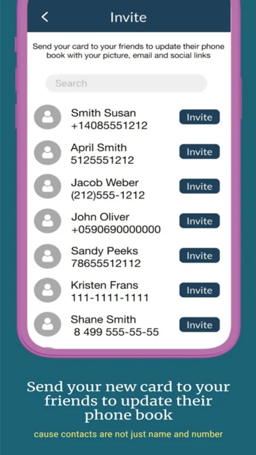 You can also share contacts via text, email, or airdrop so that you can share your e-card with business contacts even if they don’t have the app.