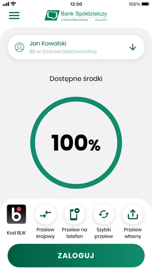 Zainstaluj aplikację mobilną Token BS Ostrow Maz i zacznij korzystać z BLIKa już dziś.