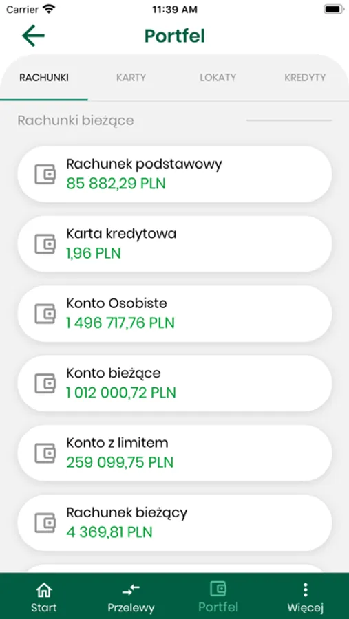 - prezentowanie rachunków, kart, lokat i kredytów klienta,