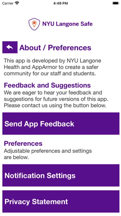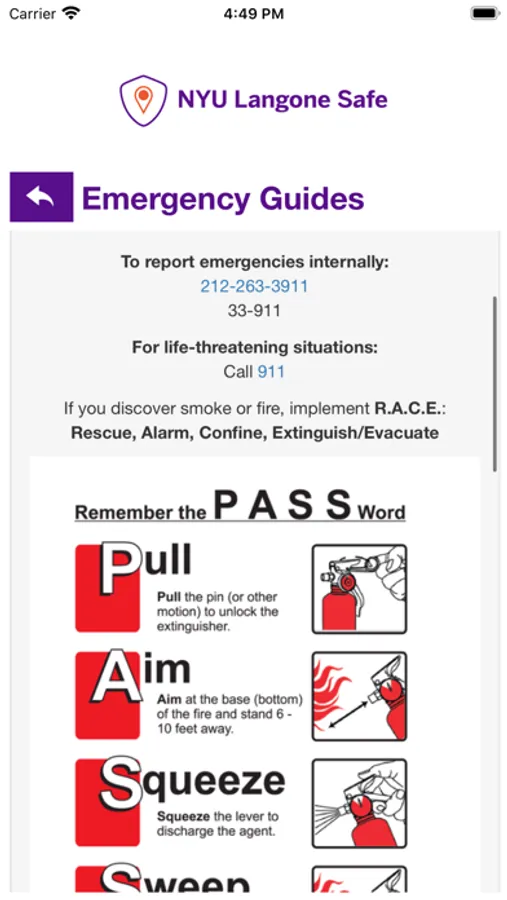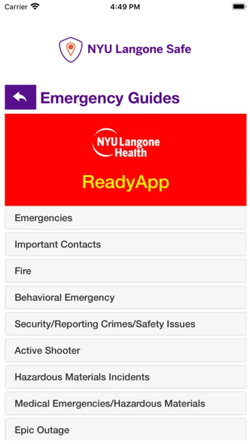 - Safety Notifications: Receive instant notifications and instructions from NYU Langone Health safety when on-campus emergencies occur.