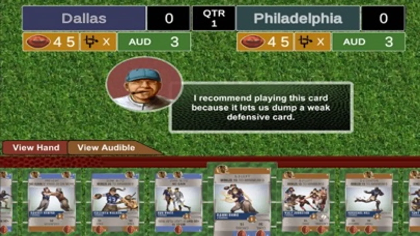 In this quick and interactive game, two players manage their teams, combining both strategy (building your team) and tactics (playing the game) without any downtime. During each half, players alternate playing ten cards to simulate a full game's highlights. Each card represents both an offensive and a defensive play, both of which will be used to resolve your opponent's and your own offensive plays.
