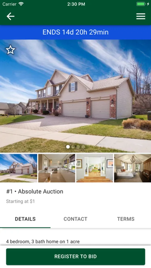 This dynamic app allows you to (1) stay informed about our upcoming auctions; (2) view properties that interest you; (3) get notifications when you’ve been outbid; (4) bid no matter where you are located (or set and forget your maximum bid to let our platform automatically bid the lowest possible winning bid for you). This is the go-to-source for up-to-the-minute information on all of our auctions.