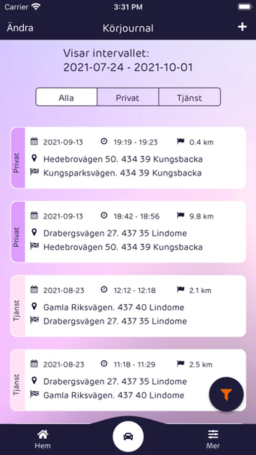 Med den smarta och digitala körjournalen från Tellit loggas alla resor automatisk med hjälp av appen. Håll enkelt koll på vilka resor som görs i tjänsten och vilka som görs privat - lägg in ett schema så sköts även detta automatiskt. Minimera även miljöpåverkan med eco-driving. Nu kör vi!