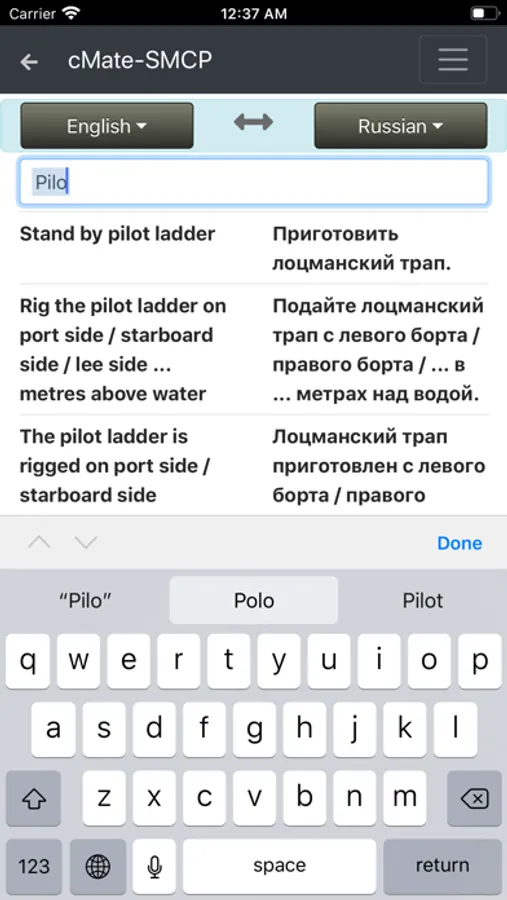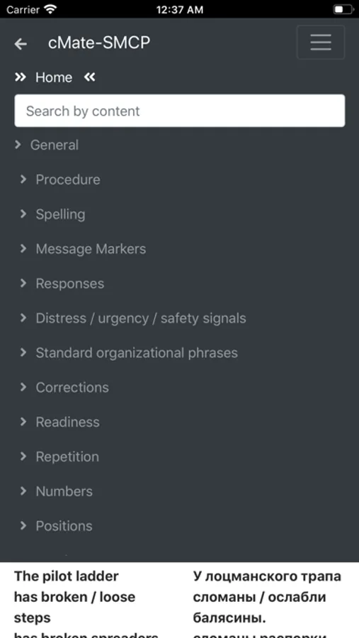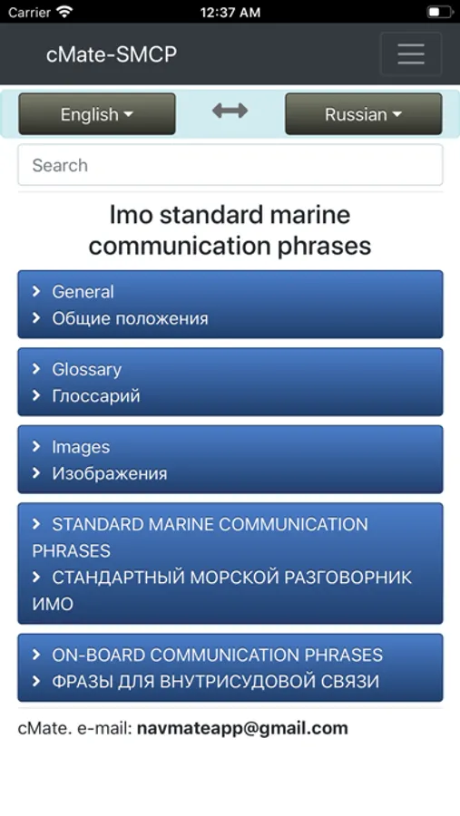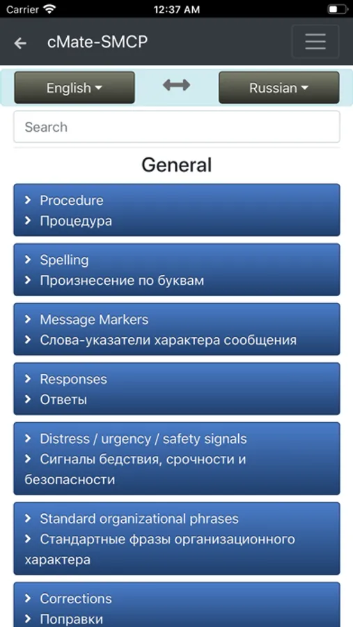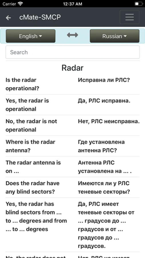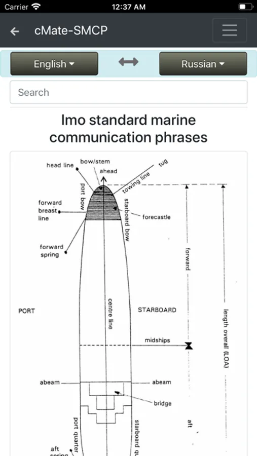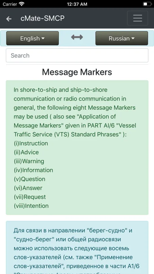 cMate-SMCP contains IMO phrases in four languages (English, Russian, Spanish, French)