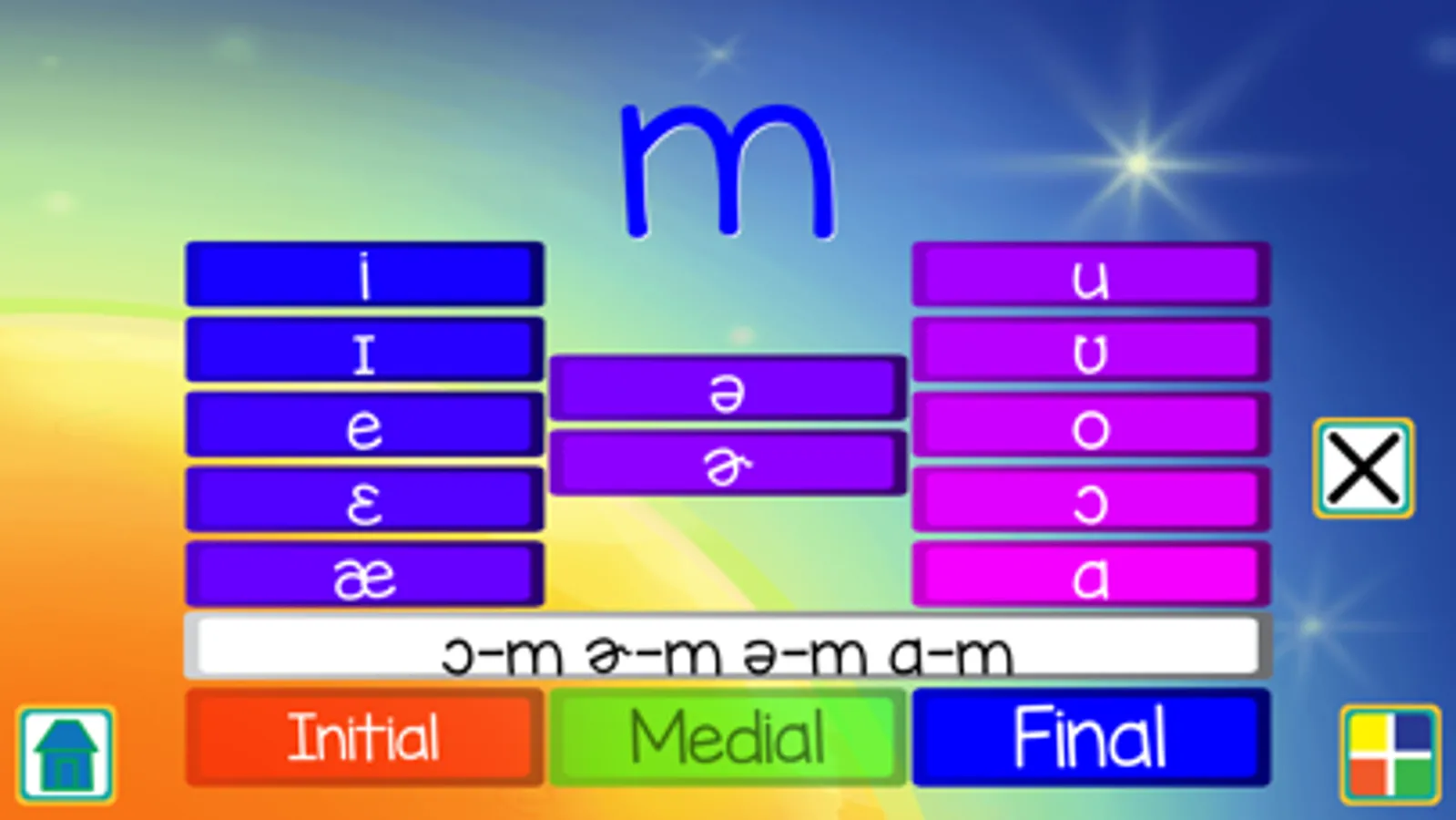Diadochokinetic syllable drills for all consonants in I-M-F positions with all vowel contexts targeted. Each target is addressed in single sets. You can also create a combination of up to 5 targets. This app is perfect for training individual sounds, sound classes, motor programming disorders, and increasing total number of correct responses across a therapy session. This game was designed by a Speech-Language Pathologist to help kids work on sound production while keeping them entertained with fun interactive graphics.