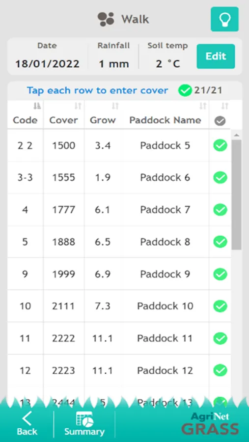 - You can record your grass covers in kgDM/Ha as you walk the farm each week.