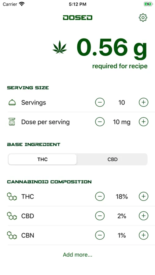 Dosed is a cooking calculator that gives you the precise measurements for your cannabis infused creations. Input the cannabinoid composition of your cannabis material, and select the desired dosage per serving. Dosed will give you the exact amount of cannabis material to add. Whether you're using oils, flower, or other forms of cannabis- Dosed is here to make sure that you're always dosed right.