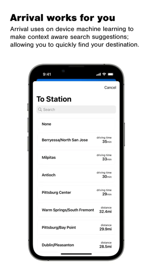 Arrival has an intelligent station search algorithm that uses on-device machine learning to provide you with relevant results.