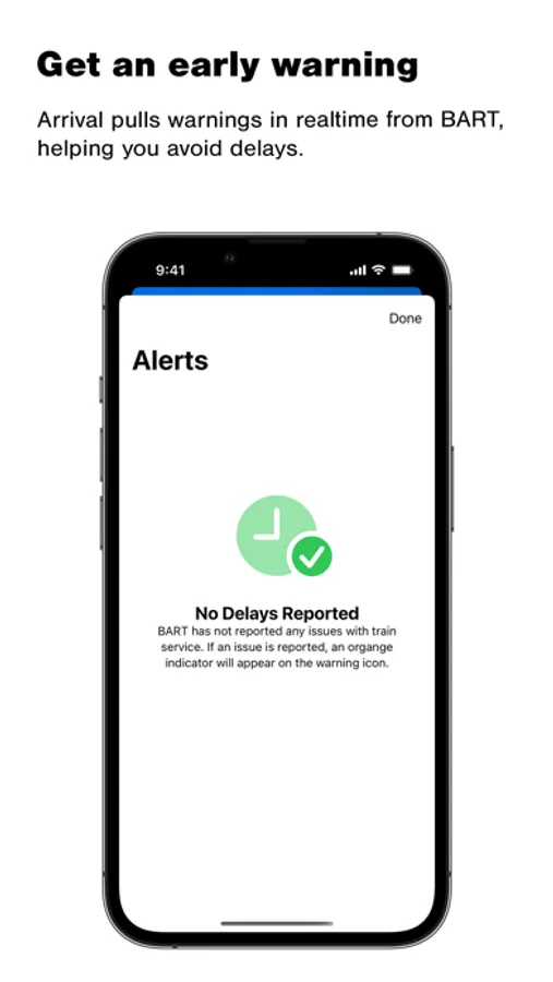 Arrival displays BART warnings in real time to help you avoid delays.
