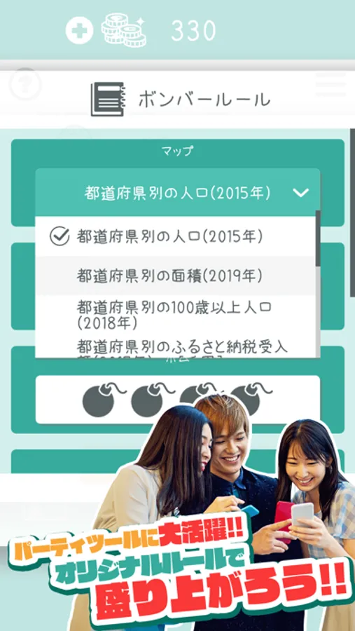 様々な豊富なお題「都道府県別キャベツの収穫量」や、設置ボンバーの数、