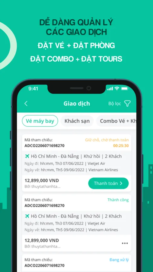 - Dễ dàng quản lý giao dịch với các trạng thái rõ ràng, sắp xếp theo thời gian.
