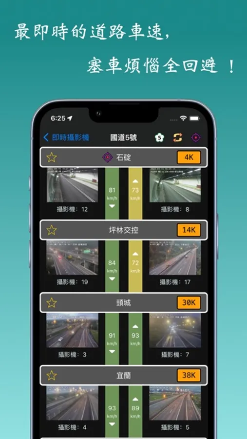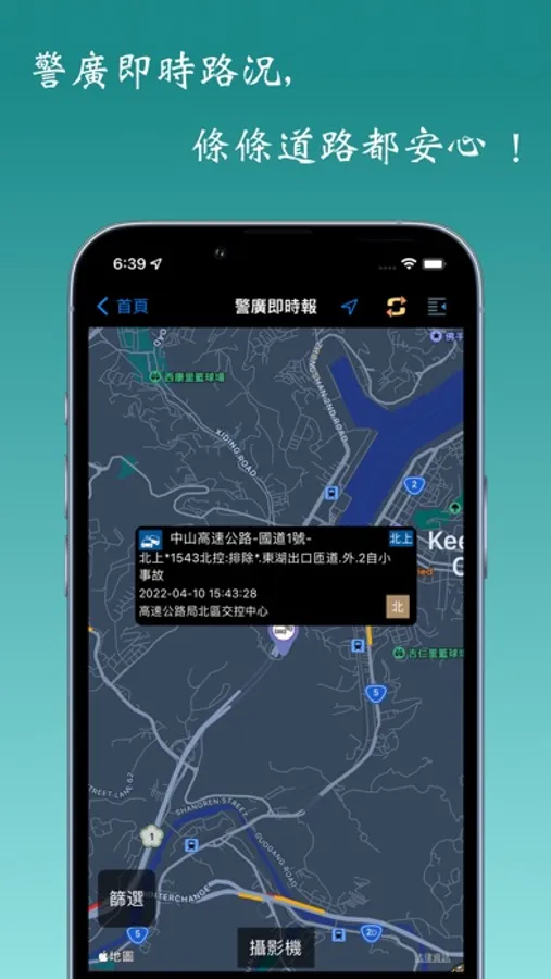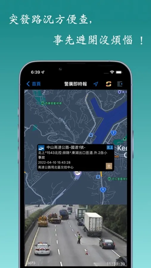 - 提供使用者攝影機影像(CCTV),即時觀看國道、省道、公路。