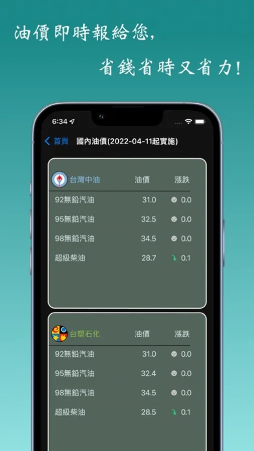 - 提供最即時的油價(中國石油、台塑石油)。
