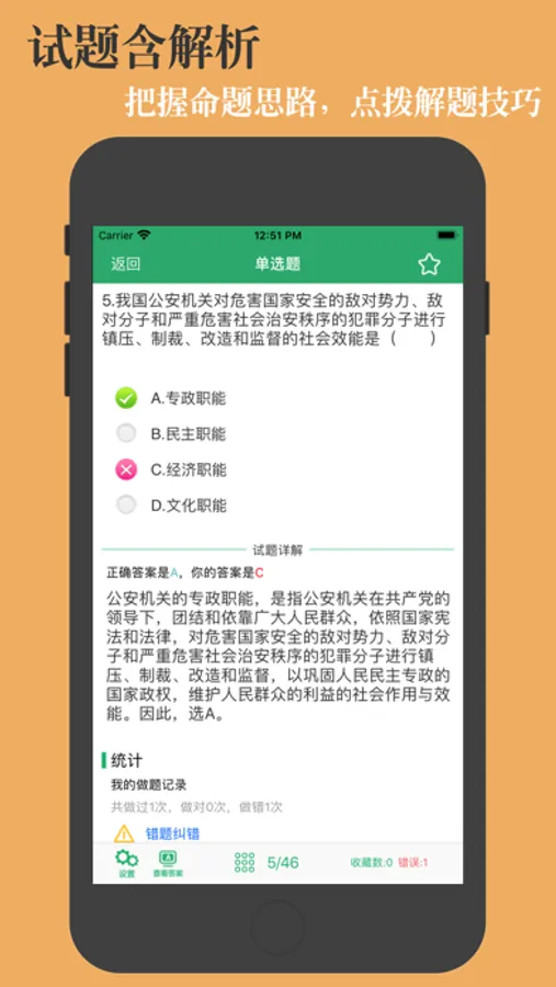 6、收藏夹:可在练习过程中自行收录题目到收藏夹,形成自己的小题库,针对性练习,提高通过率。
