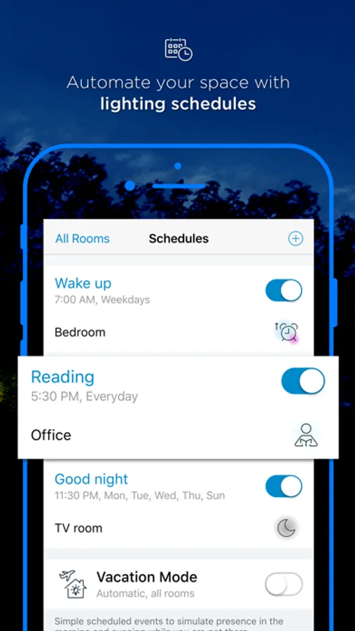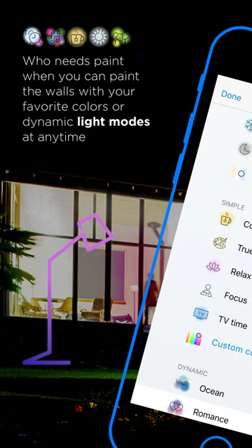 Smart lighting made simple. Organize and control your lights by groups within rooms over Wi-Fi or remotely through the cloud. Improve the way you work, feel and simply enjoy the environment you're in with our wide variety of different light modes that cover the range from fun to functional. All your settings are securely stored on the cloud and can be shared with your family, friends and even your guests if you like.