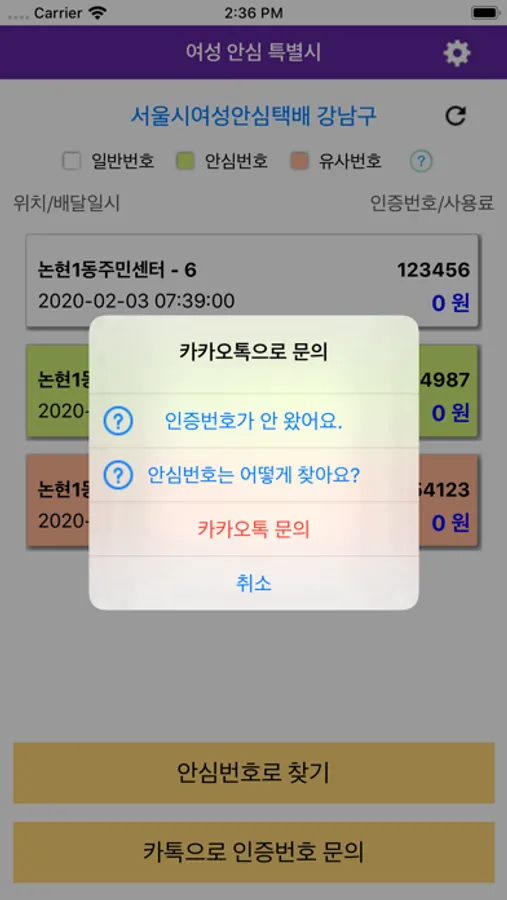 위 방법으로도 찾을 수 없었다면 카카오톡 문의를 통해 간단하게 인증번호를 요청할 수 있습니다. 다만 약간의 대기 시간이 소요될 수 있습니다.