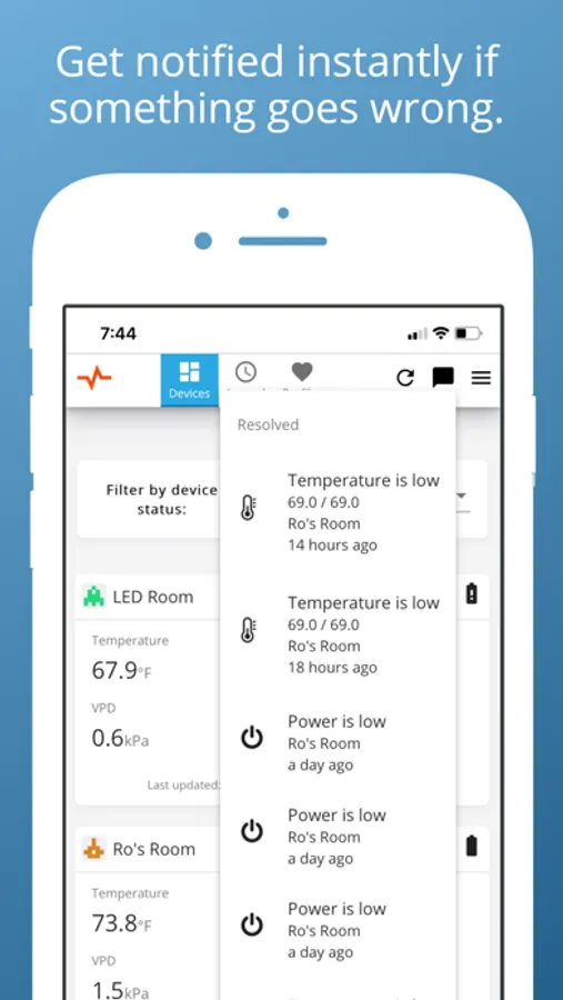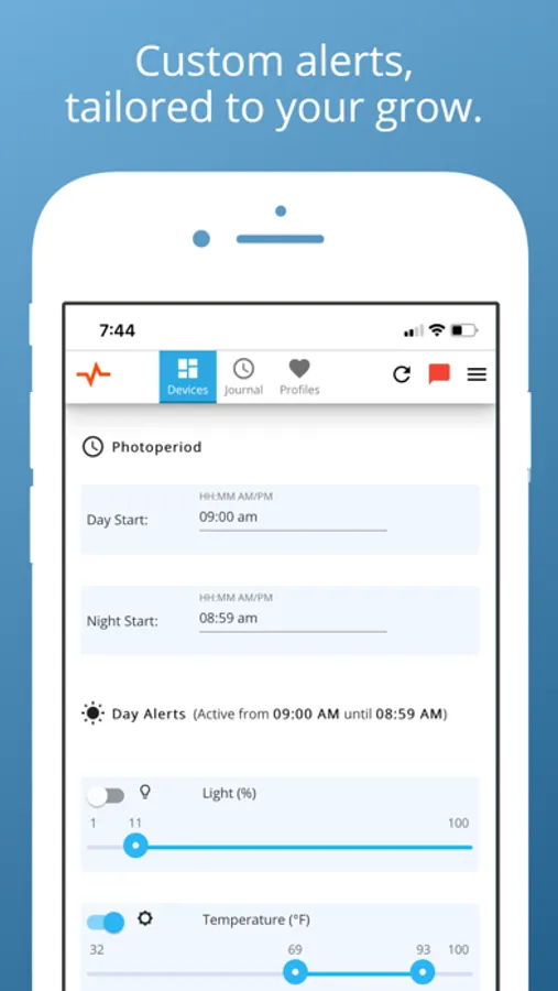 Improve your grow with remote monitoring of temperature, RH, light, and VPD, custom alerts, and integrated journaling.