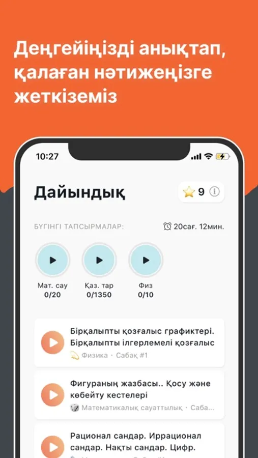 ⁃ Ұлттық Біріңғай Тестілеуге Онлайн дайындық. Әр оқушының алғашқы деңгейін, мақсатын және үйрену жылдамдығын ескере отырып әр оқушыға жеке дайындық бағдарламасы құрылады. Апталық сынама тесттер және ақылды қайталау жүйесі де бар.