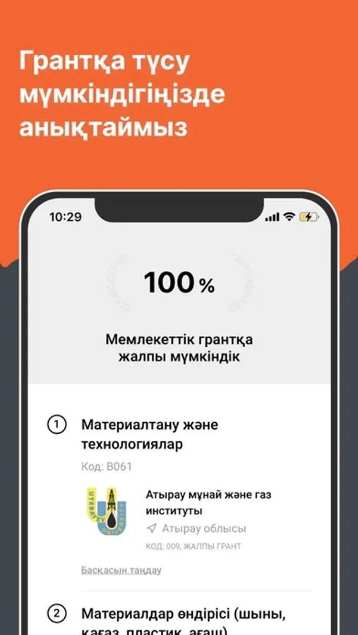 ⁃ Қанша баллмен, қандай мамандыққа мемлекеттік грант алу мүмкіндігіңізді көре аласыз. Сонымен қатар әртүрлі университеттердің ішкі гранттарын ұту мүмкіндігі бар.