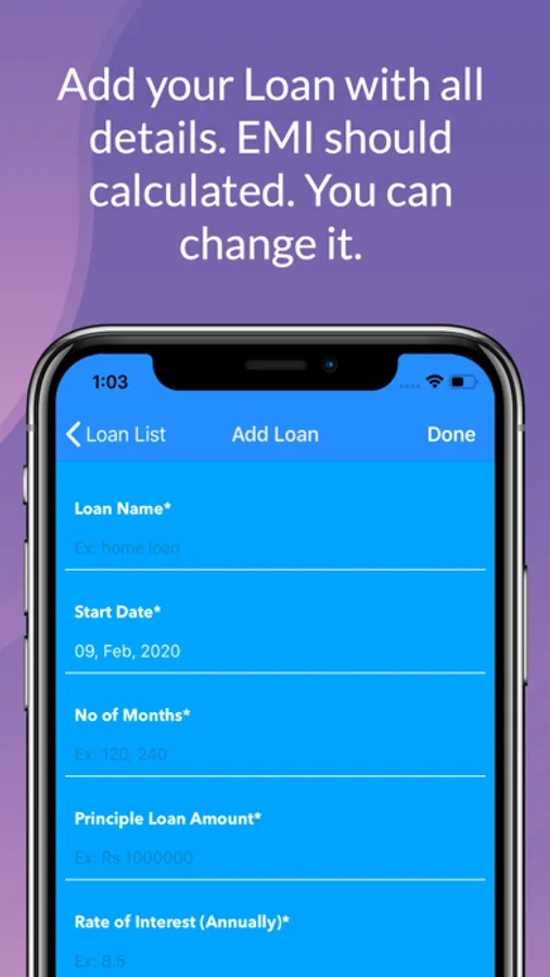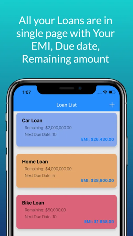 1. Add Loan Information with all details like start date, amount, EMI , due date etc.
