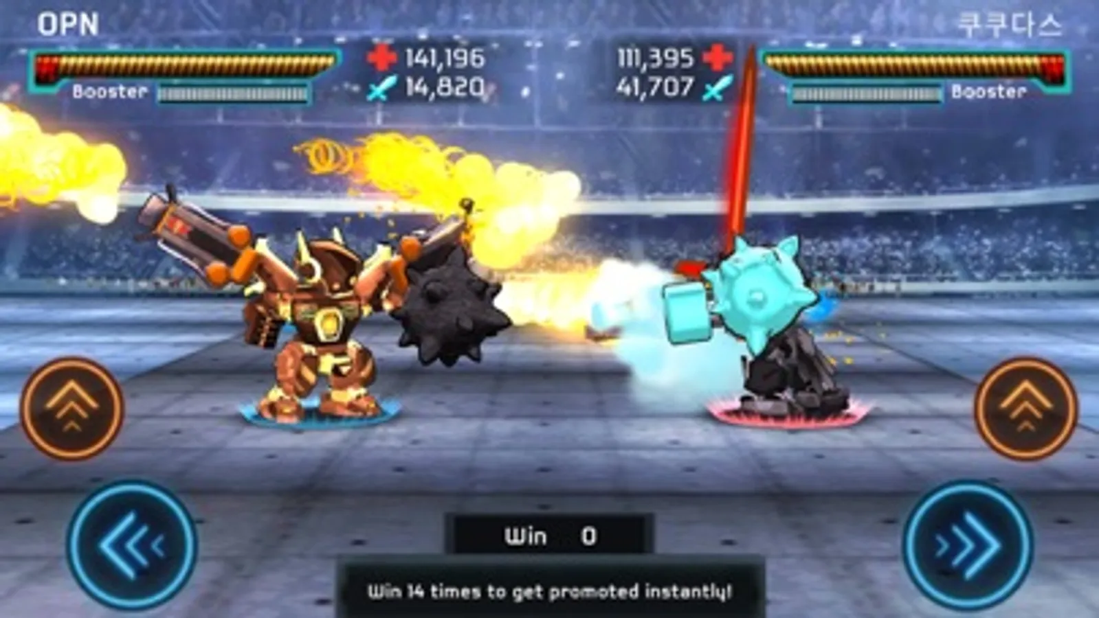 First, you need to prepare your robot fighting machine for the battle arena. Build fighting robot intuitively by dragging parts to it, customize colors, and more! Enter robot battle easily with just a button tap, you will be matched with an opponent's robot fighting machine in a few seconds. Prepare for the ultimate battle machine crash fight – this is a real steel robot fighting!