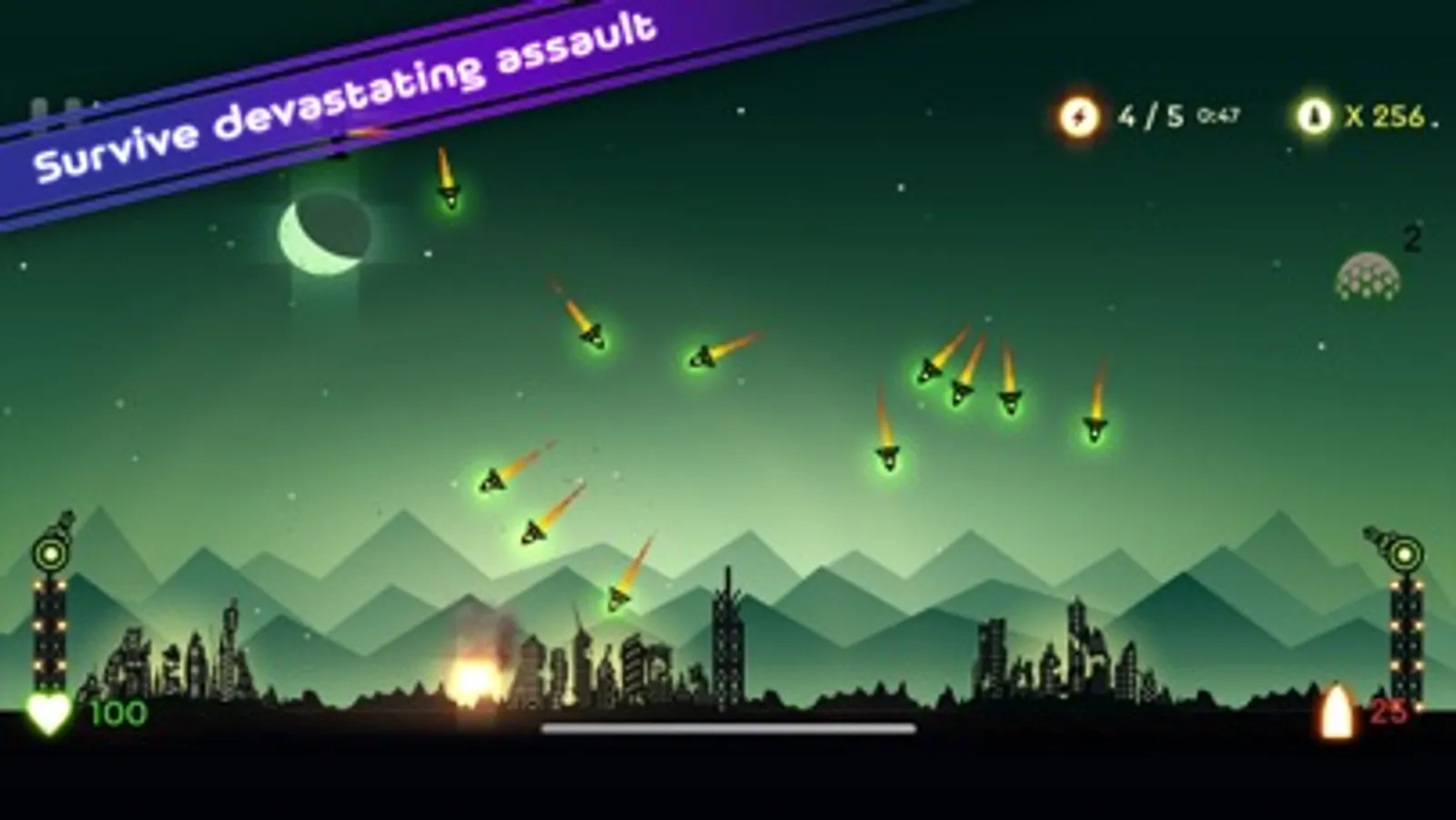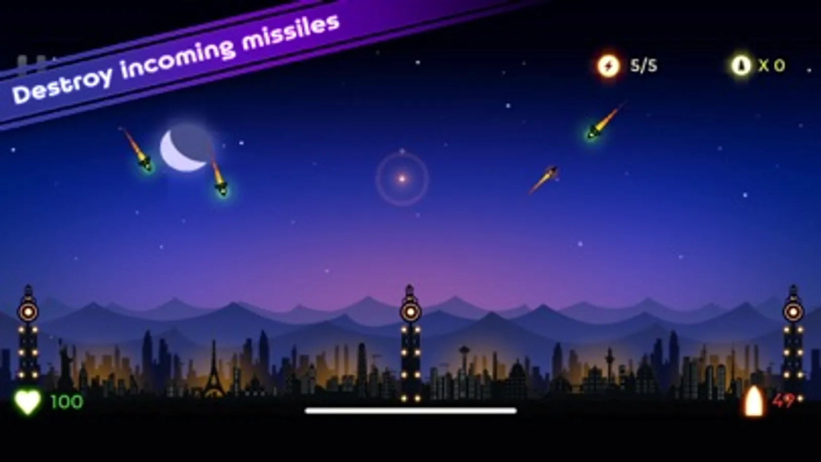 Launch counter-missiles from three towers to protect your city and target power-ups to gain an edge at critical moments.