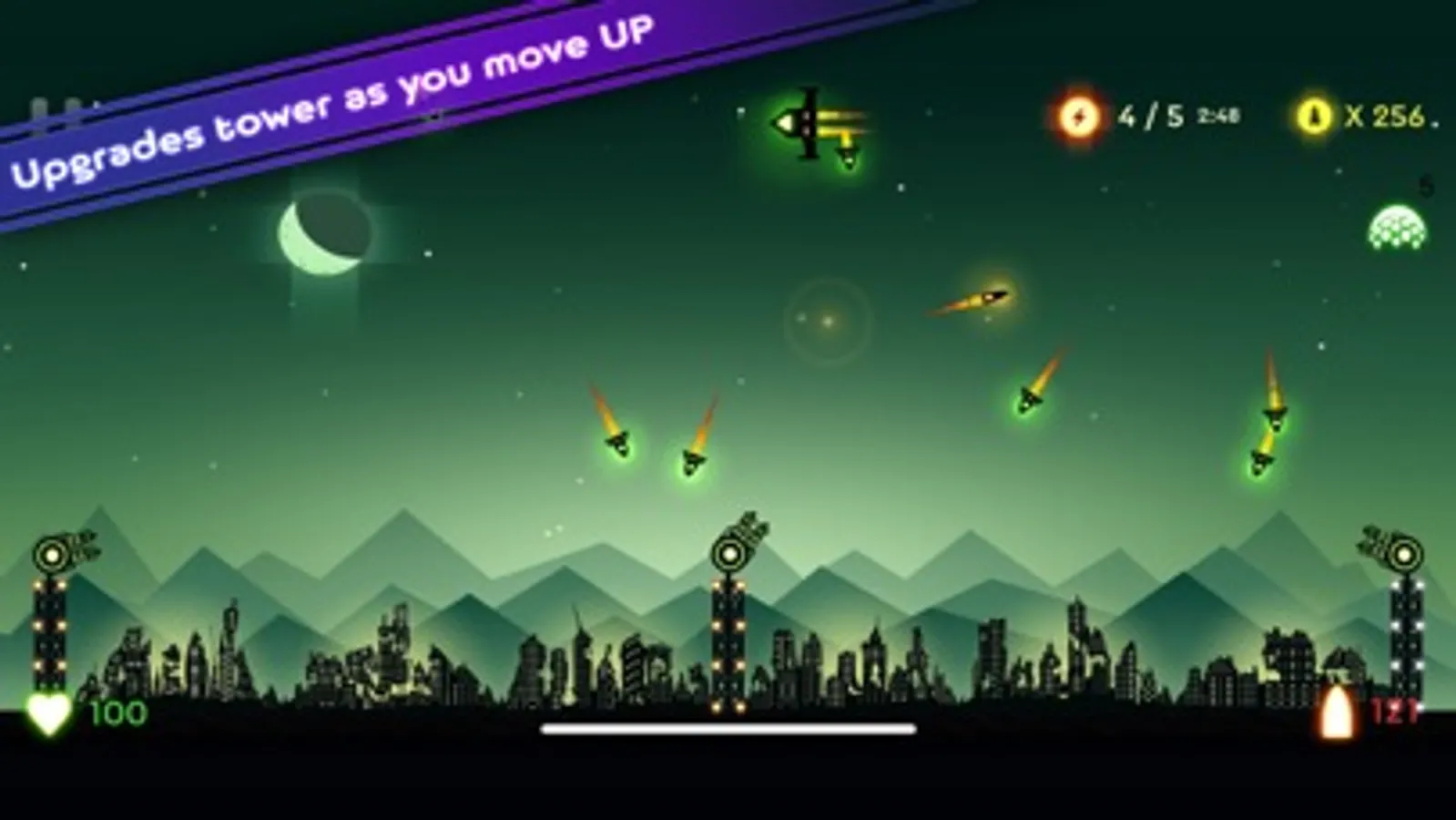 Each destroying enemy missile will earn you a coin and allows those coins for you to upgrade tower and buy power-ups to get an edge and achieve the highest scores and unlock all levels.