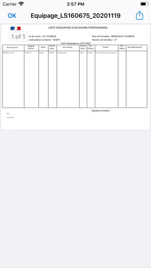 La liste d'équipage permettra à votre groupement ou cabinet comptable d'intégrer les lignes de service dans la DSN.