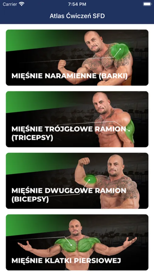 Aplikacja Atlas Ćwiczeń SFD to najlepszy i najbardziej innowacyjny zbiór ćwiczeń na poszczególne partie mięśniowe. Aplikacja skierowana jest zarówno do osób, które dopiero zaczynają treningi na siłowni jak i do osób bardziej zaawansowanych. Dzięki naszej aplikacji dowiesz się jak w poprawny sposób wykonywać najpopularniejsze ćwiczenia, poznasz alternatywne metody treningu siłowego oraz urozmaicisz swój dotychczasowy plan treningowy.