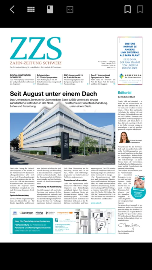 Die ZZS Zahn-Zeitung Schweiz ist unverwechselbar und frisch. Durch das moderne Layout fallen Ihre Anzeigen noch besser auf. Die Artikel sind durchweg lesefreundlich und ansprechend gestaltet.