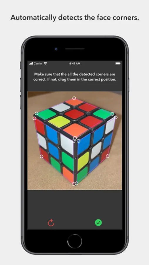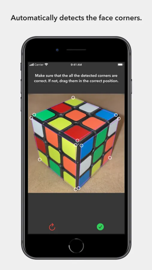 - The app tries to detects each cubie color from the cube images (it may need a bit of your help along the way).