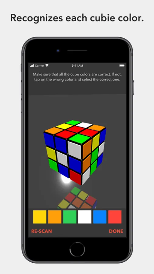 The CubeSolver app helps you solve a 3x3 cube in a few easy steps: