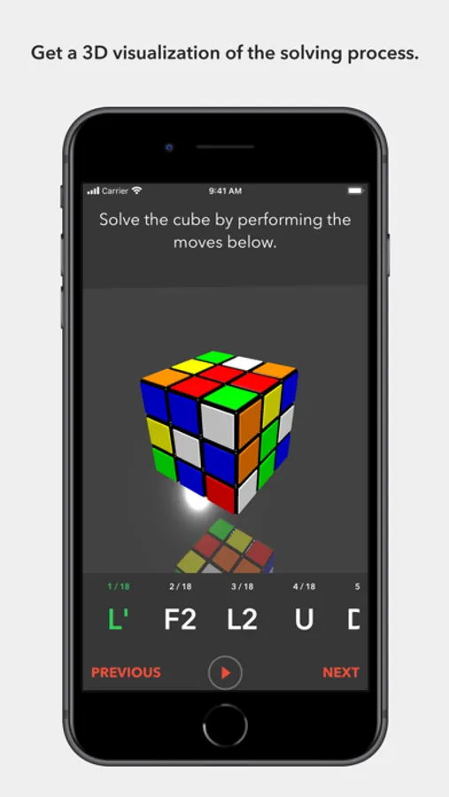 - Scan your cube using the device's camera (or input your cube configuration manually).