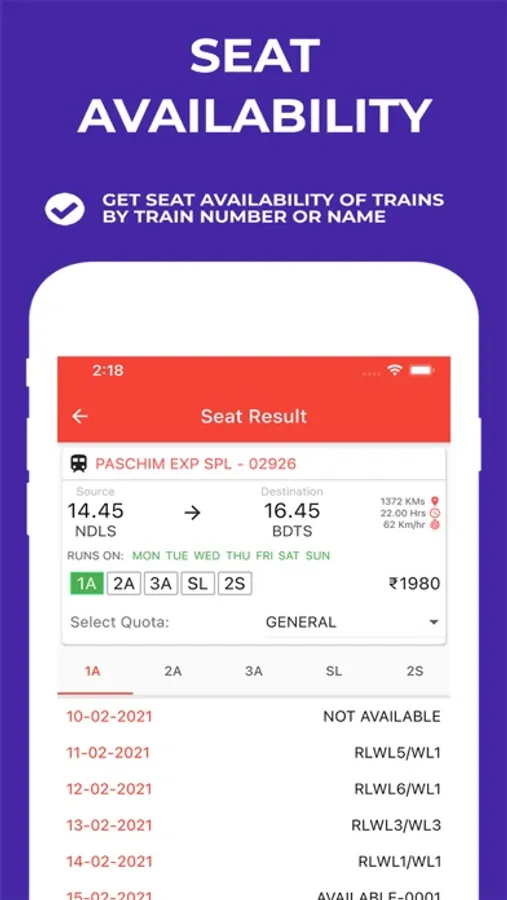 * Check PNR Status and save it for later use with refresh functionality at any time. So you don't have to enter PNR number every time.