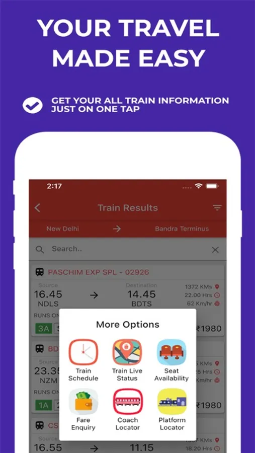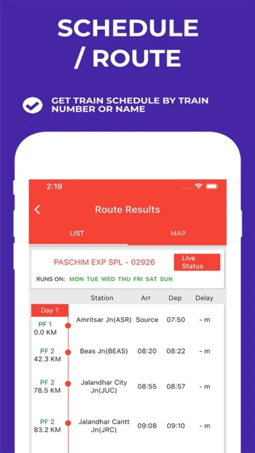 * Look for your Train schedule and status which are provided on top of main screen so you can easily and straight away look for it to save time.