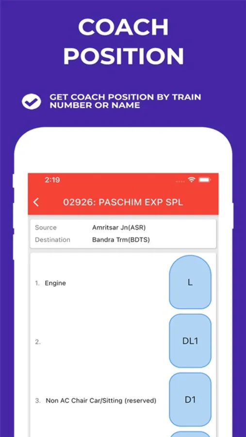 Train coach position - Locate your train coach position which will help you to find exact location on platform.