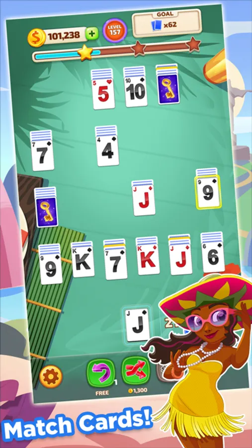 Find the matching cards on the gameboard and connect the pair. Collect and remove all cards to complete the level. Use boosters and become a matching expert level by level. Plus, it's totally free to play!