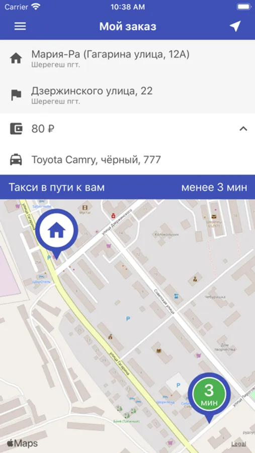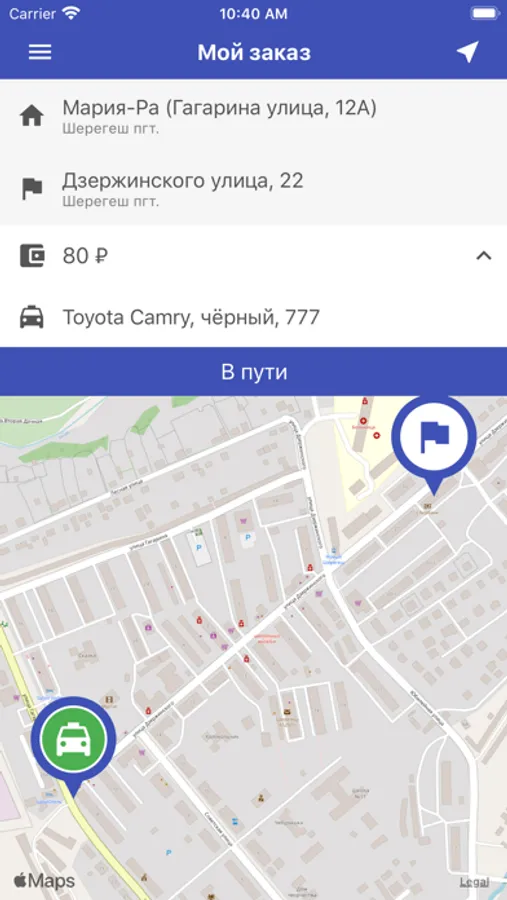 + Возможность отслеживать положение такси на карте в режиме онлайн.
