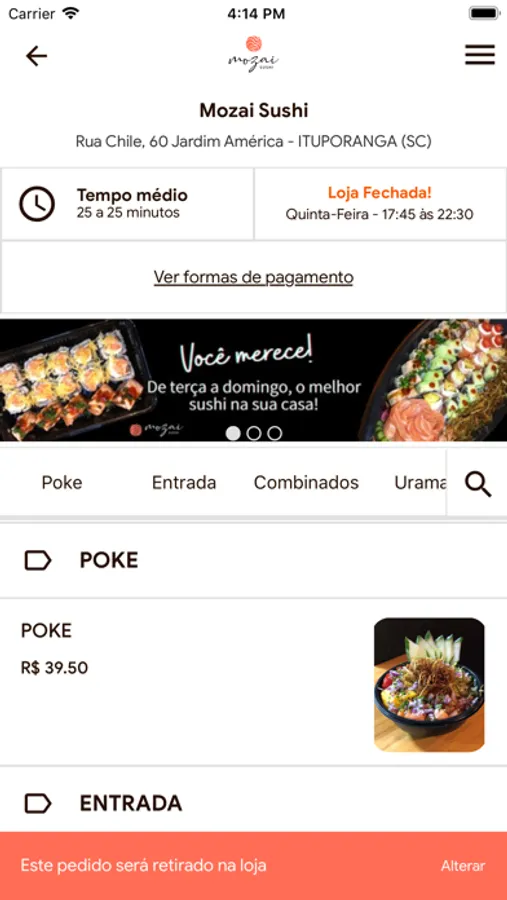 Agora você pode fazer o seu pedido com muito mais praticidade no app do Mozai Sushi & Burger.