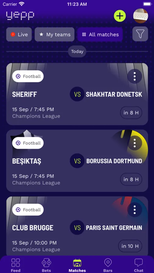 Download Yepp and challenge your friends on the next big match!