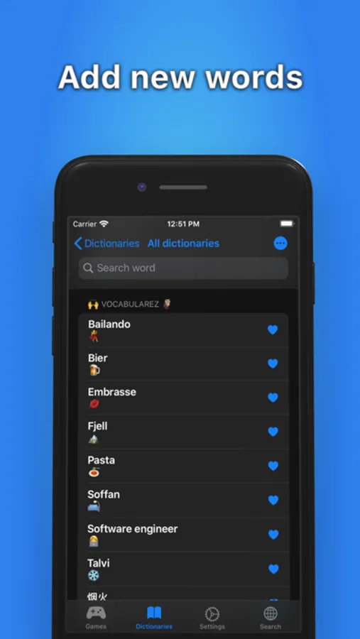 VocabularEz app will help you improve your vocabulary of any desired language. You can create a dictionary and replenish it with new words and expressions every time you hear something new. If you are learning a new language, you can collect all new words in one place. All dictionaries are automatically synchronized with all devices through the cloud.