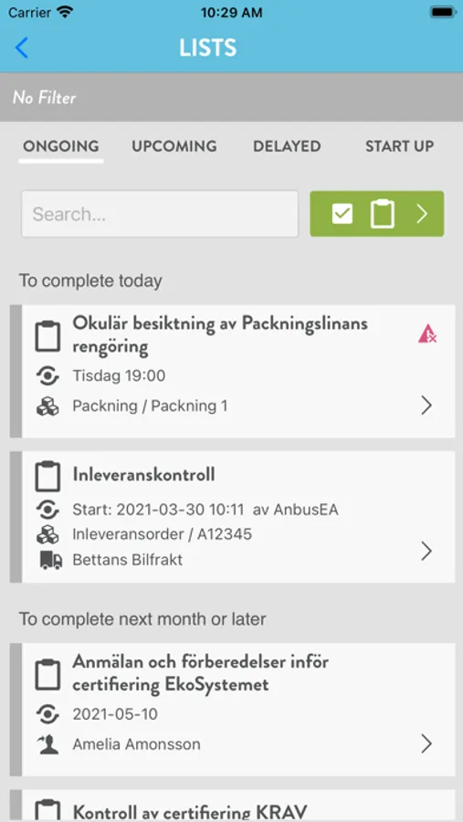Detta är en ny app och för kunder som använder Listor(äldre) hänvisar vi till vår förra app som hittas i App Store under namnet "OebasWorks".